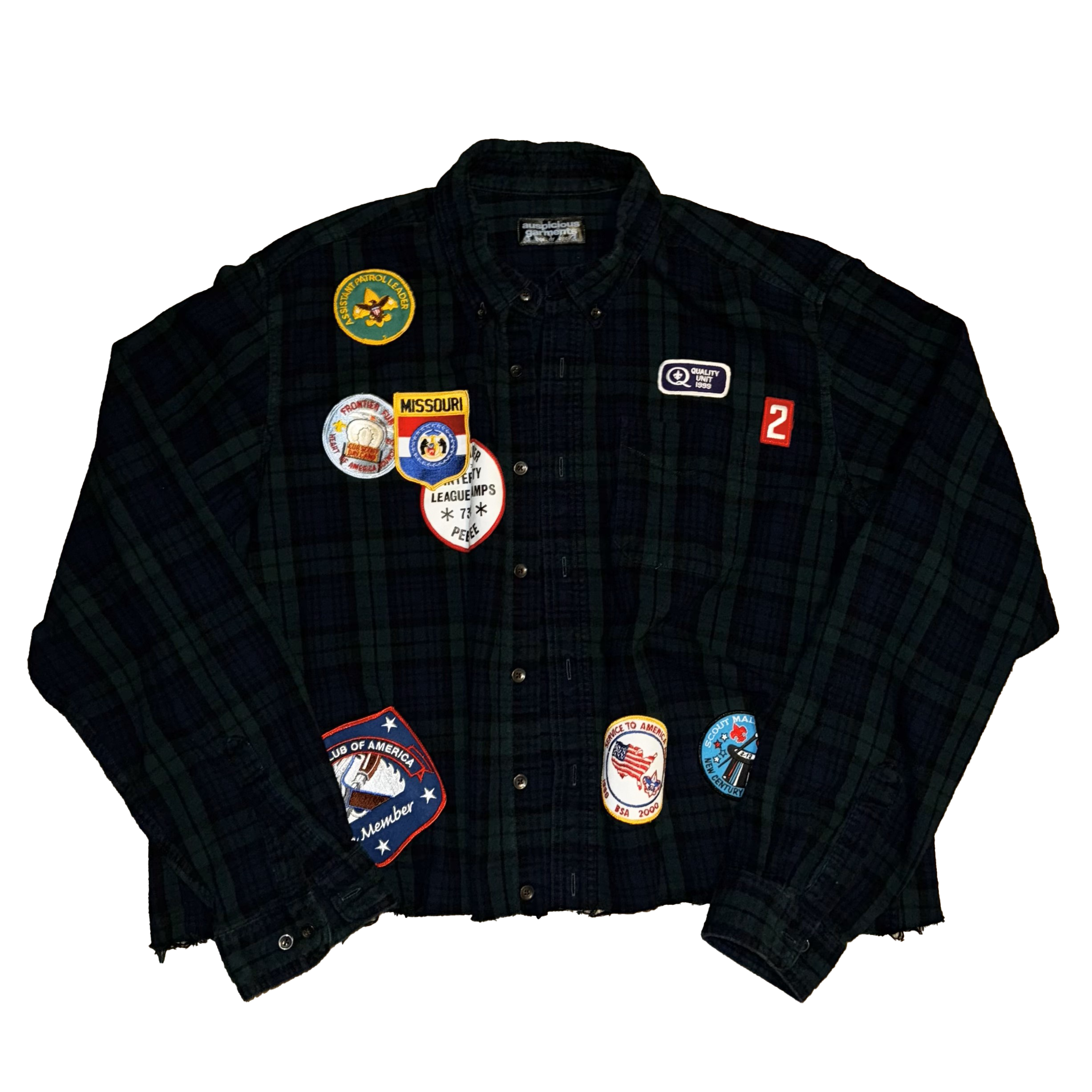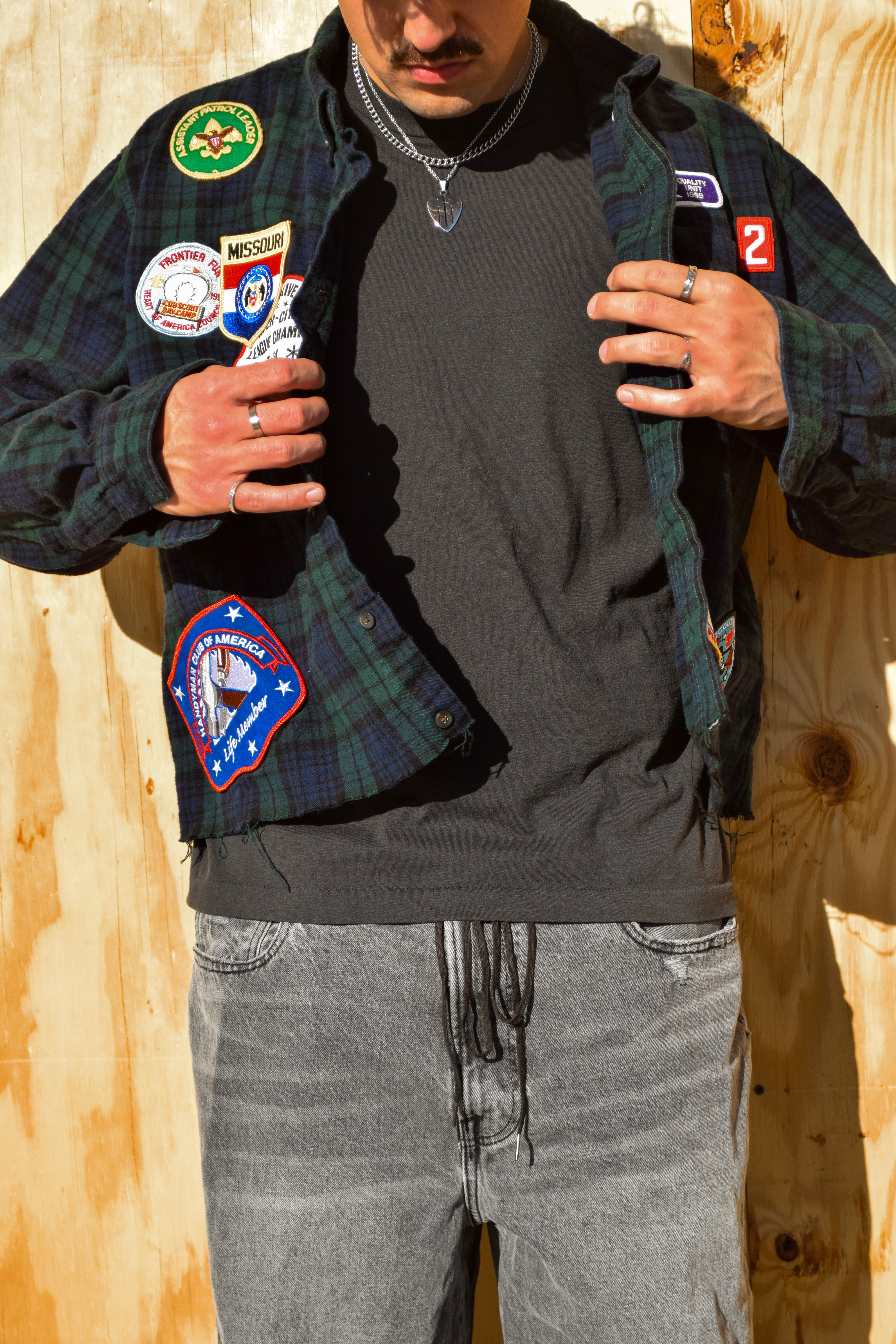 Cut and sewn in Austin, Texas. Brandishing vintage patches from all over the United States of America.