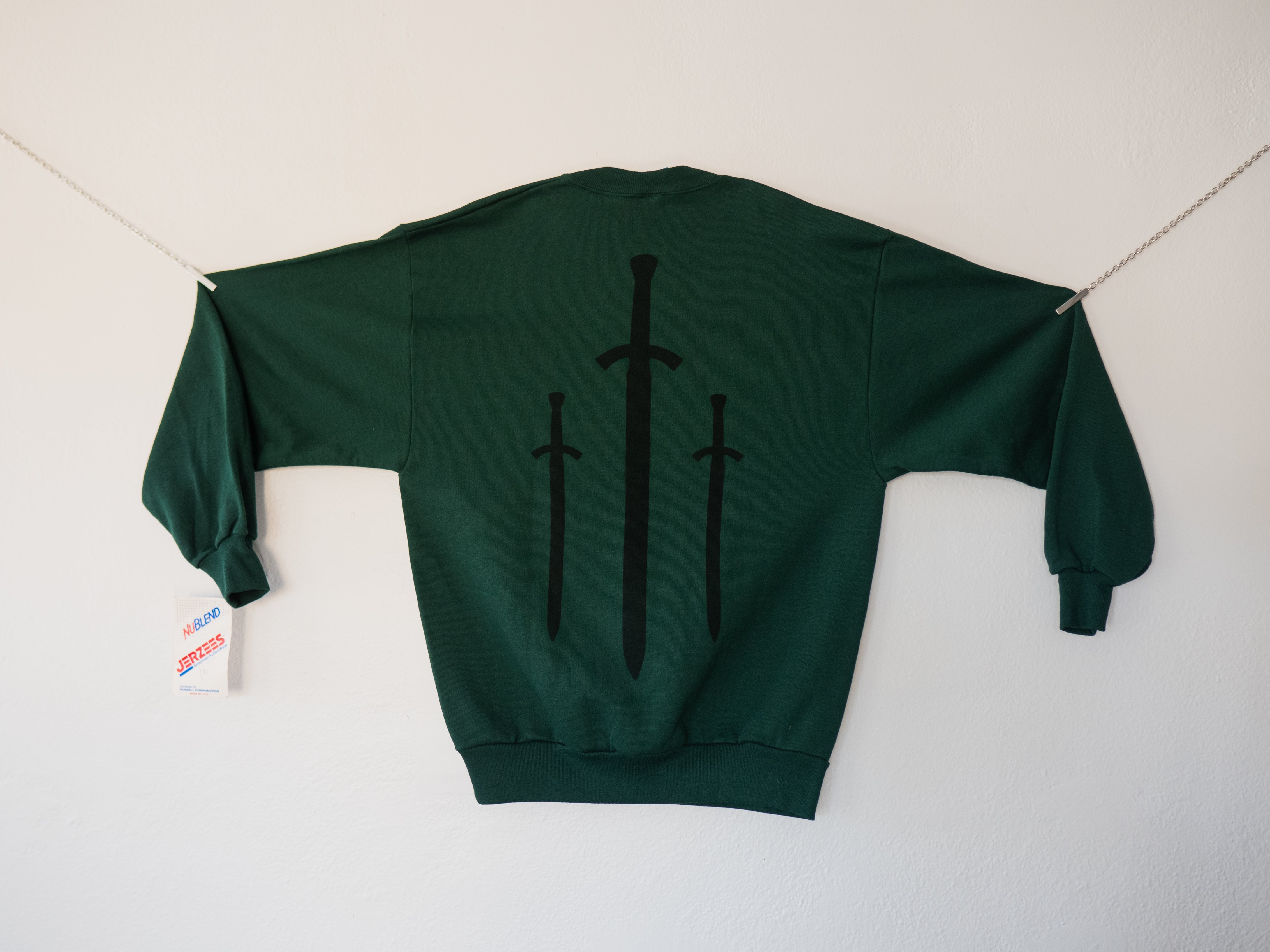 Fading of sword print into garment will occur and is intentional.